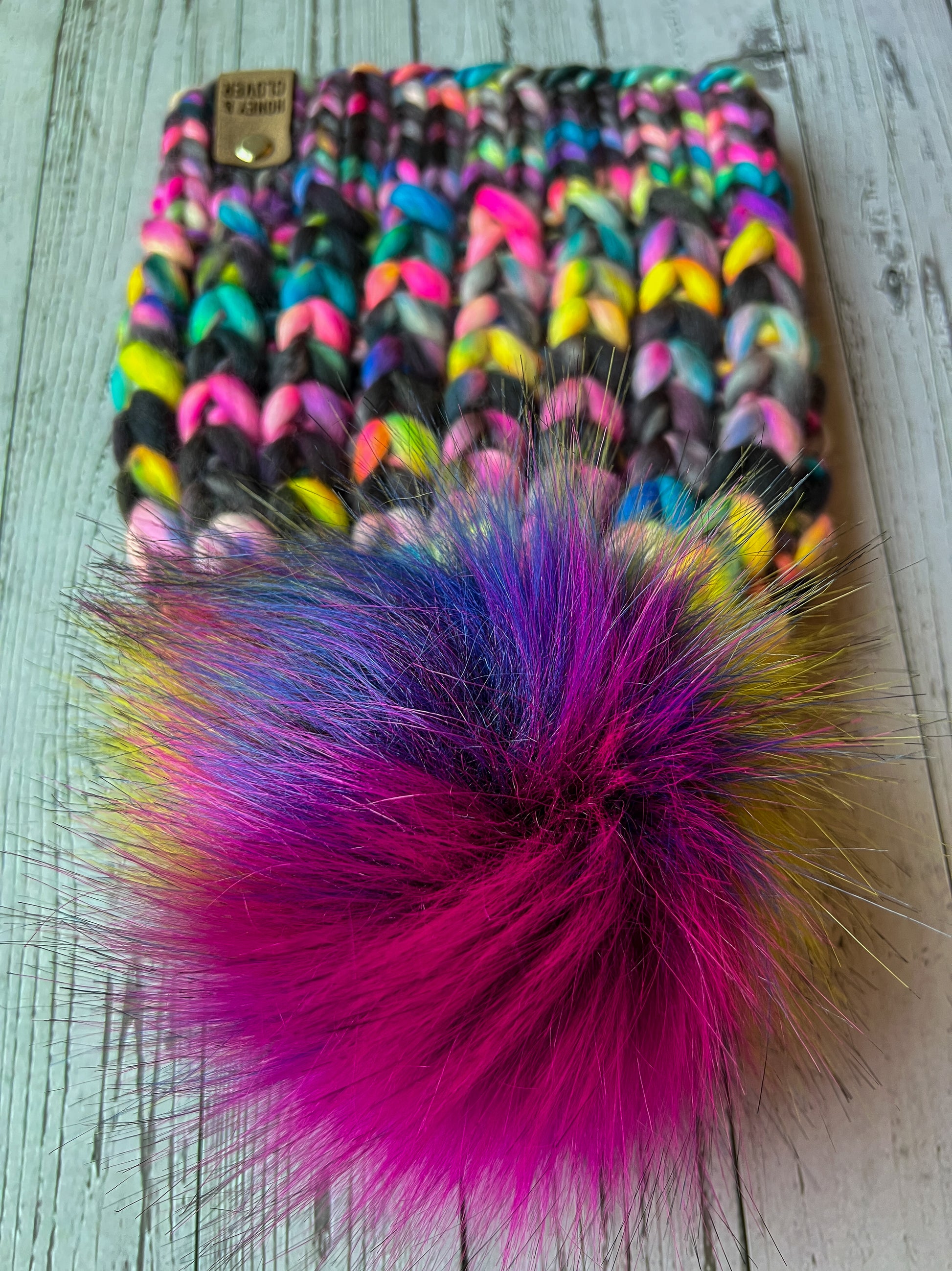 ❥ Faux fur Pom Pom secured by a button*.